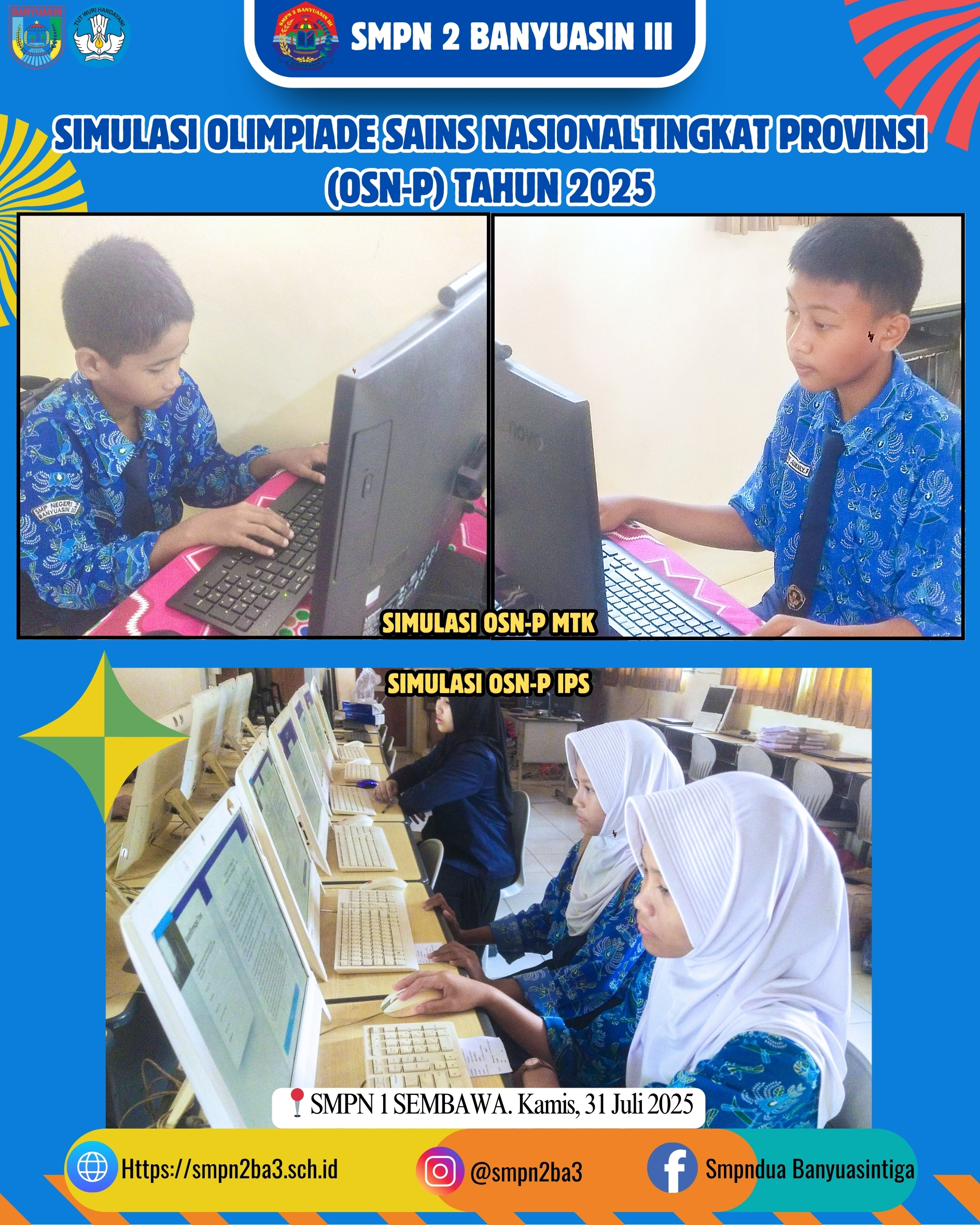 KORANHARIANBANYUASIN.ID - Murid Sekolah Menengah Pertama Negeri (SMPN) 2 Banyuasin III mengikuti simulasi Olimpiade Sains Nasional Provinsi (OSN-P) Sumatera Selatan (Sumsel)....